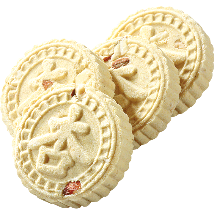 選用進(jìn)口大顆杏仁,經(jīng)過(guò)師傅精心挑選和切碎,融合新鮮綠豆粉、天然植物油和花生、芝麻等用心制作,色澤金黃、入口即化、口感酥松、餅芯香甜、肥而不膩、齒頰留香。Almond CookiesGuia Almond Cookies choose import whole almond,through baker carefully select and chop,concentrate on mix fresh mung bean powder, natural vegetable oil,peanut and sesame together,make it have a golden appearance,taste loose and exudes a strong almond fragrance. -